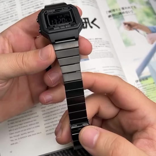 The Casio B650WB-1BDF combines vintage digital style with modern functionality. Featuring a sleek black stainless-steel band and a square digital display, this timepiece offers essential features like stopwatch, alarm, LED light, and water resistance. Perfect for those who love a bold retro look with everyday practicality.Shop now at Posterboy.com and elevate your style with Casio’s signature craftsmanship.
