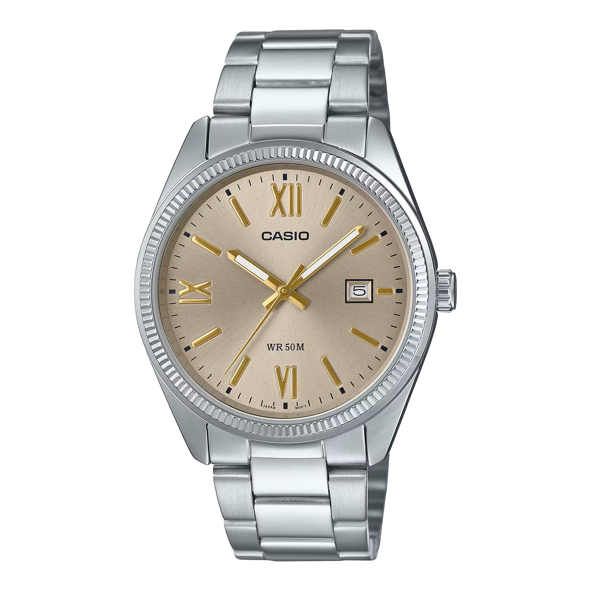 Add a touch of timeless elegance to your wrist with the Casio MTP-1302DD-9AVDF. Featuring a sleek stainless steel case and bracelet, this classic watch boasts a refined champagne-gold dial with luminous hands and markers for easy readability. With its reliable quartz movement and 50-meter water resistance, it’s the perfect everyday companion — blending sophistication with practicality. Shop now at Posterboy.com and elevate your style with Casio’s signature craftsmanship.