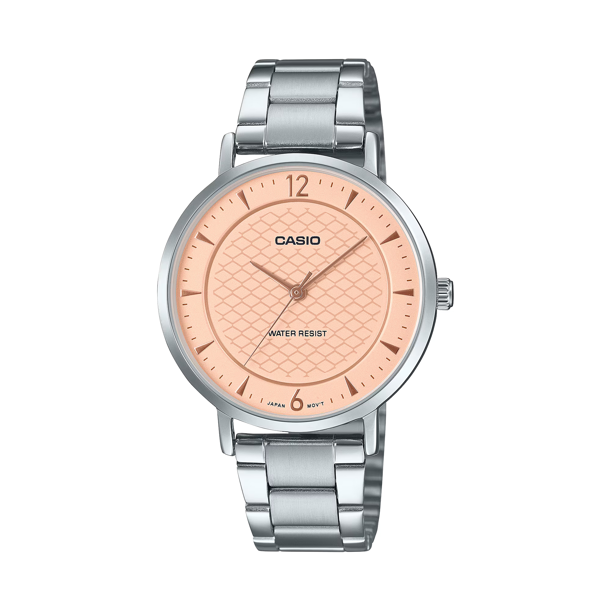 Casio LTP-VT04D-4ADF blends elegance and simplicity in a sleek, modern design. Its radiant rose-pink dial paired with a polished silver stainless steel bracelet creates a timeless look perfect for everyday wear or special occasions. Lightweight, stylish, and effortlessly classy — this is the accessory your wrist has been waiting for. Upgrade your style today — order now on Posterboy.com!