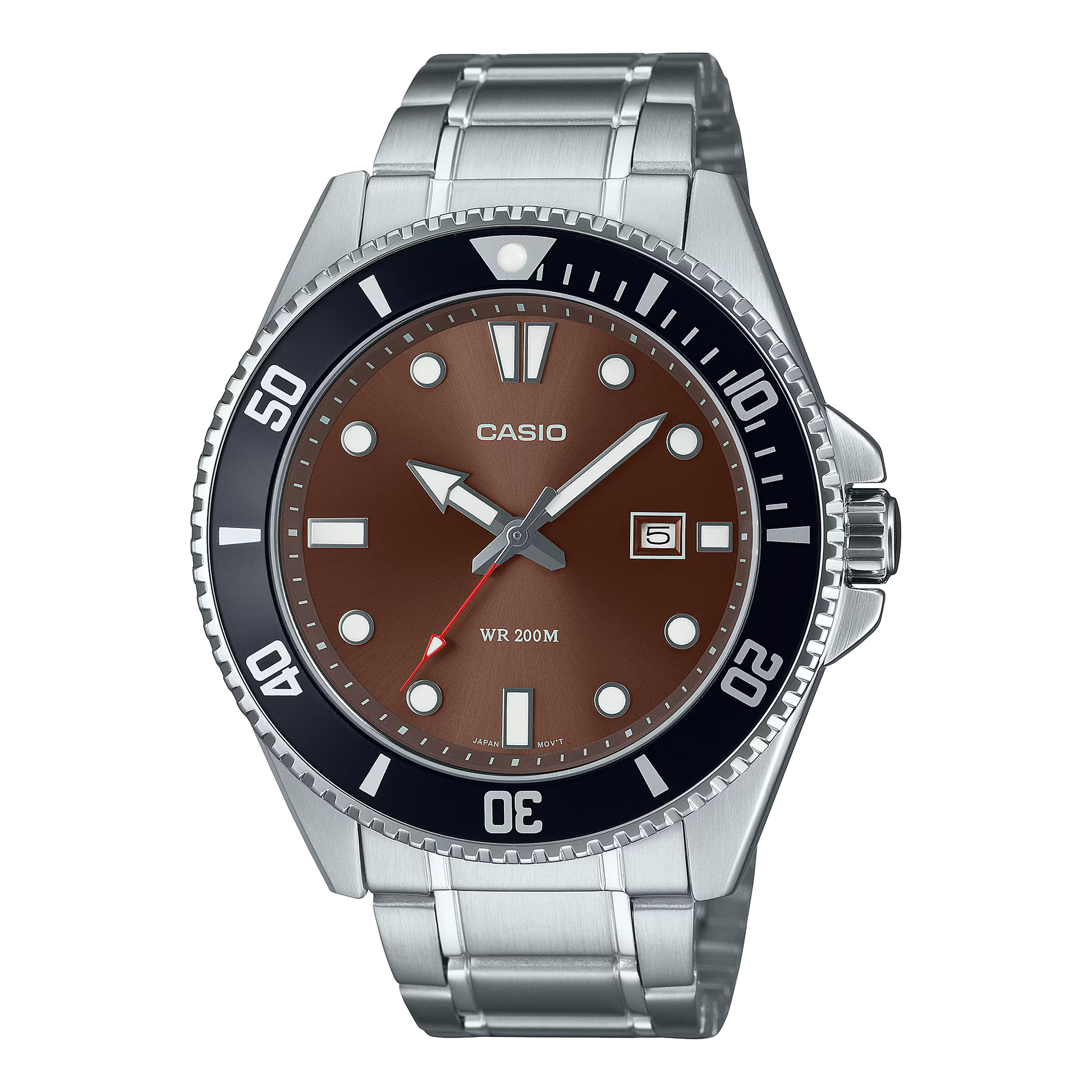 Casio MDV-107D-5AVDF brings bold style and reliable performance together with its striking brown dial, sturdy stainless-steel bracelet, and 200m water resistance. Designed for everyday confidence and weekend adventure, this diver-inspired watch is your perfect all-round companion. Upgrade your wrist game today — shop now on Posterboy.com!