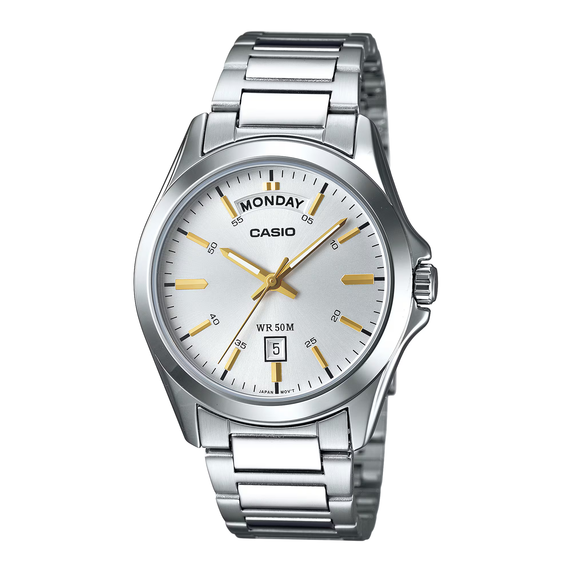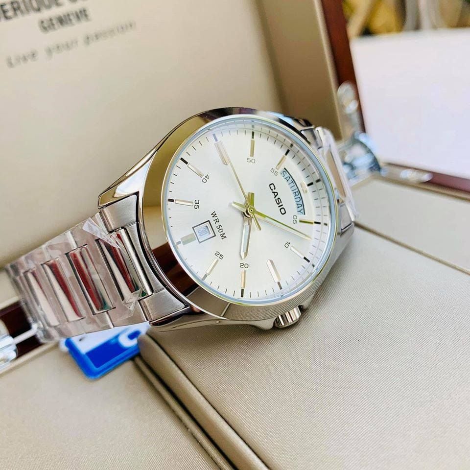The Casio MTP-1370D-7A combines timeless elegance with everyday functionality. Featuring a sleek stainless steel case and bracelet, this classic analog watch includes a day-date display and a refined white dial for a clean, versatile look. Water-resistant up to 50 meters, it’s perfect for both work and casual wear — a reliable choice for those who value style and precision. Upgrade your wrist game today – order now at posterboystore.com and experience timeless reliability!