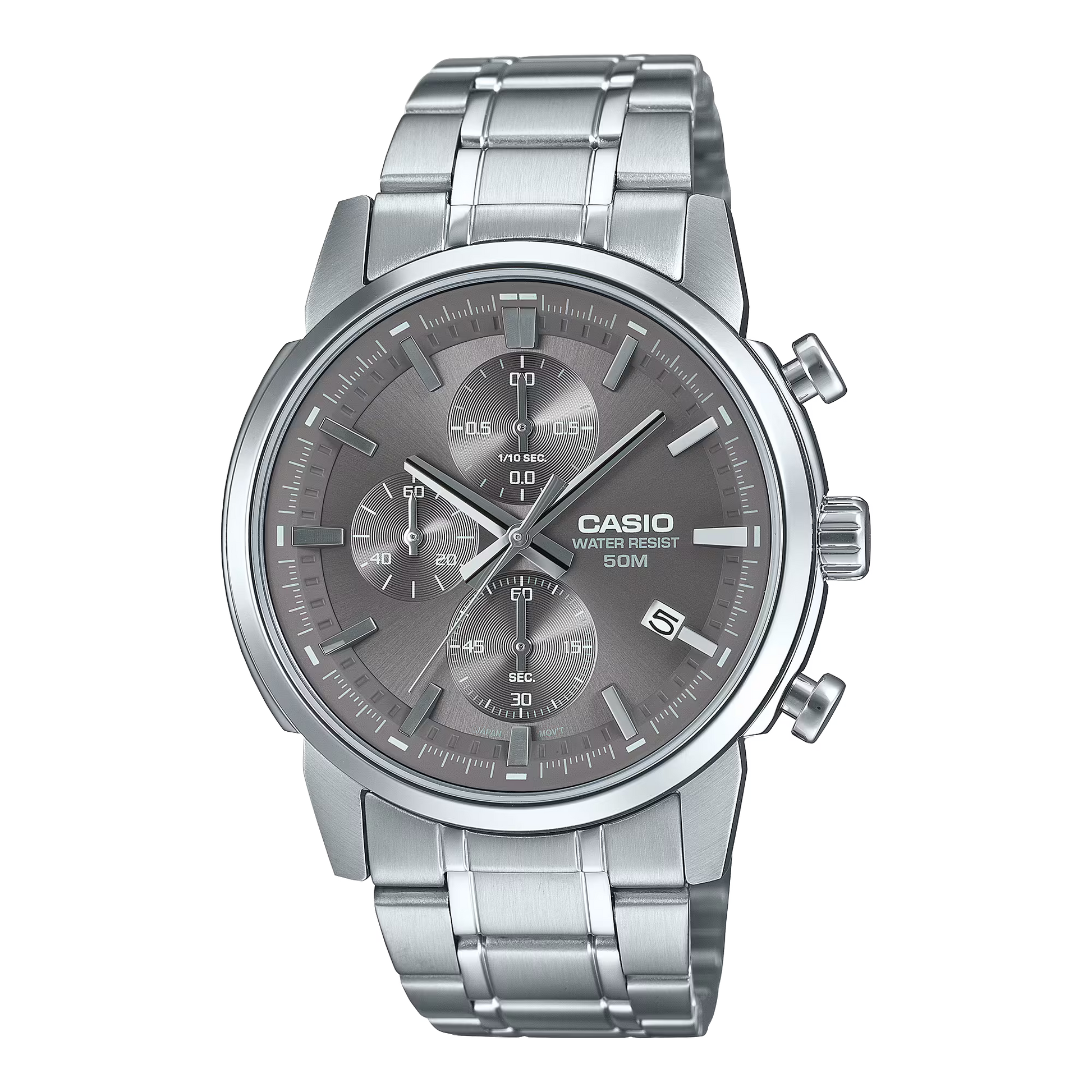 The Casio MTP-510D-8AVDF offers a clean, modern look with its sleek stainless-steel body, bold markers, and refined grey dial. Built for reliability and daily wear, it combines durability with a classic design that never goes out of style.