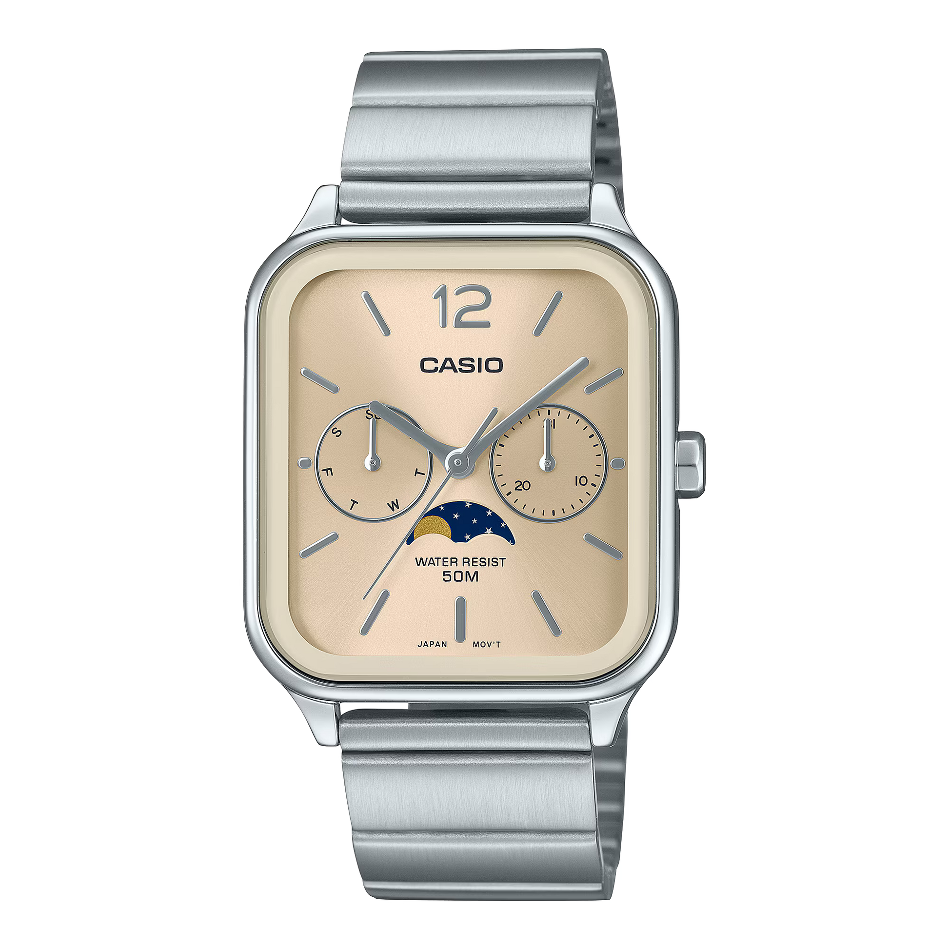The Casio MTP-M305D-9AVDF is a stylish analog watch that blends classic elegance with everyday functionality. Featuring a striking champagne gold dial, durable stainless steel case and bracelet, and a multi-dial day and date display, it’s perfect for both formal and casual wear. Water-resistant and built with Casio’s signature reliability, this timepiece is designed to keep you on time and in style.Shop now at Posterboy.com and elevate your style with Casio’s signature craftsmanship.
