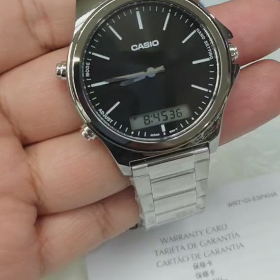 The Casio MTP-VC01D-1EUDF blends modern minimalism with everyday practicality. Featuring a sleek black dial, silver-tone hands, and a refined stainless-steel bracelet, this timepiece delivers a clean, sophisticated look. Perfect for both casual and formal wear, it’s built with reliable quartz movement and durable construction — a true Casio classic for timeless style. order now at posterboystore.com and experience timeless reliability!