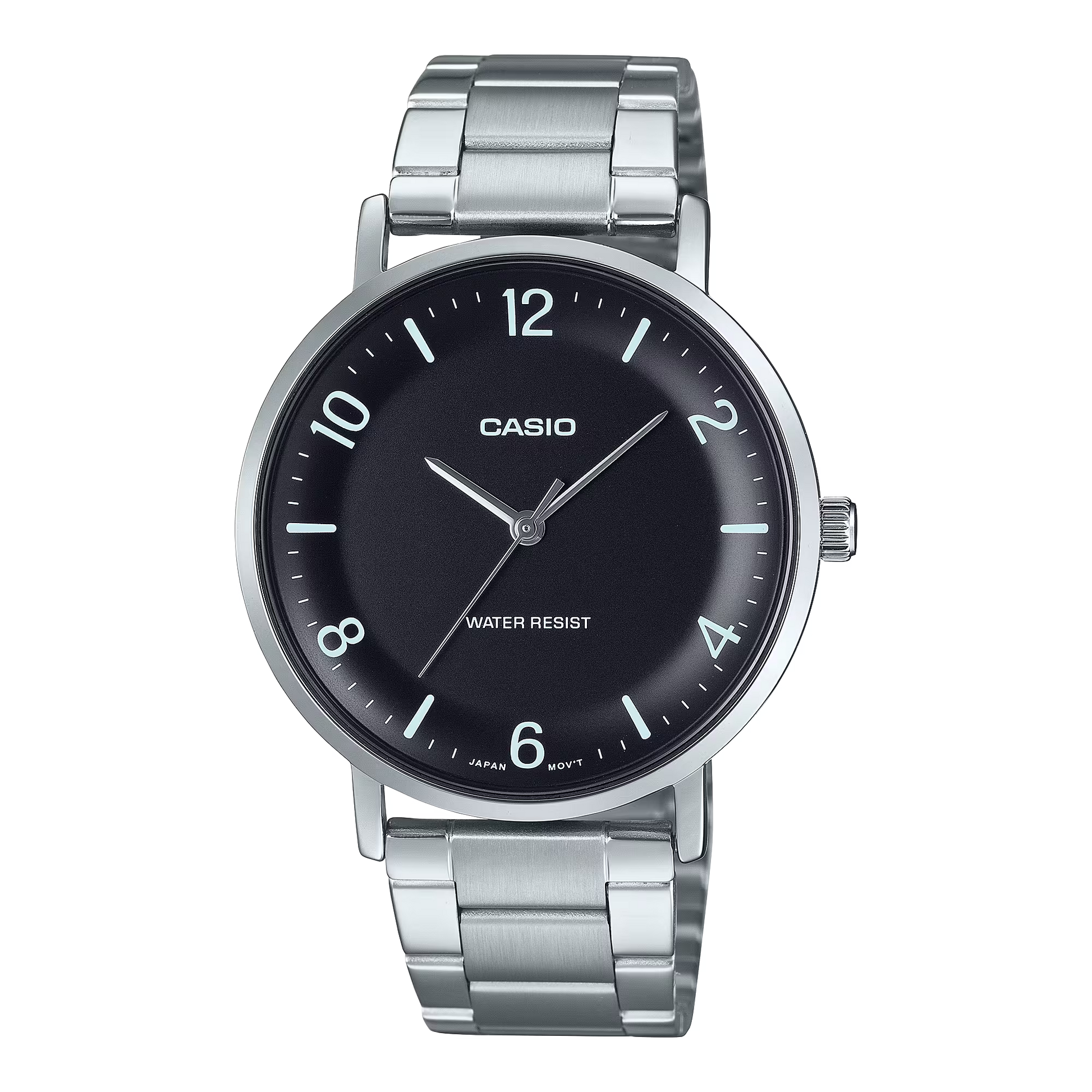 Elevate your everyday style with the Casio MTP-VT03D-1BDF. This sleek analog watch combines a classic black dial with a durable stainless steel band for timeless elegance and reliability. Perfect for work, casual outings, or special occasions. ✨Grab yours now at PosterBoy.Com and step up your wrist game!