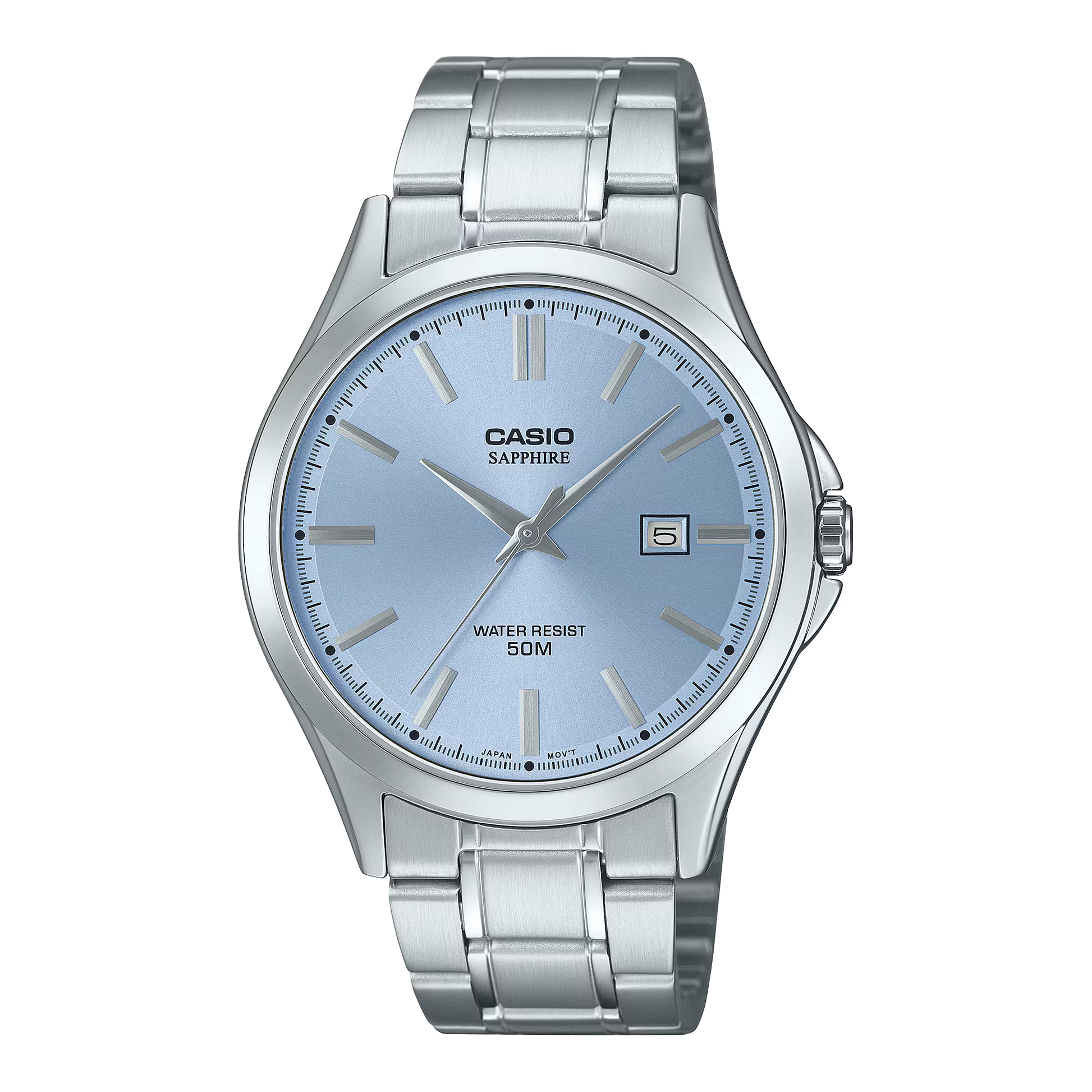 Elevate your everyday style with the Casio MTS-115D-2A2VDF — a sleek analog timepiece that blends sophistication with durability. Featuring a striking blue dial, stainless steel case, and scratch-resistant sapphire crystal, this watch is built for both elegance and endurance. Its minimalist design, paired with water resistance up to 50 meters, makes it perfect for any occasion.